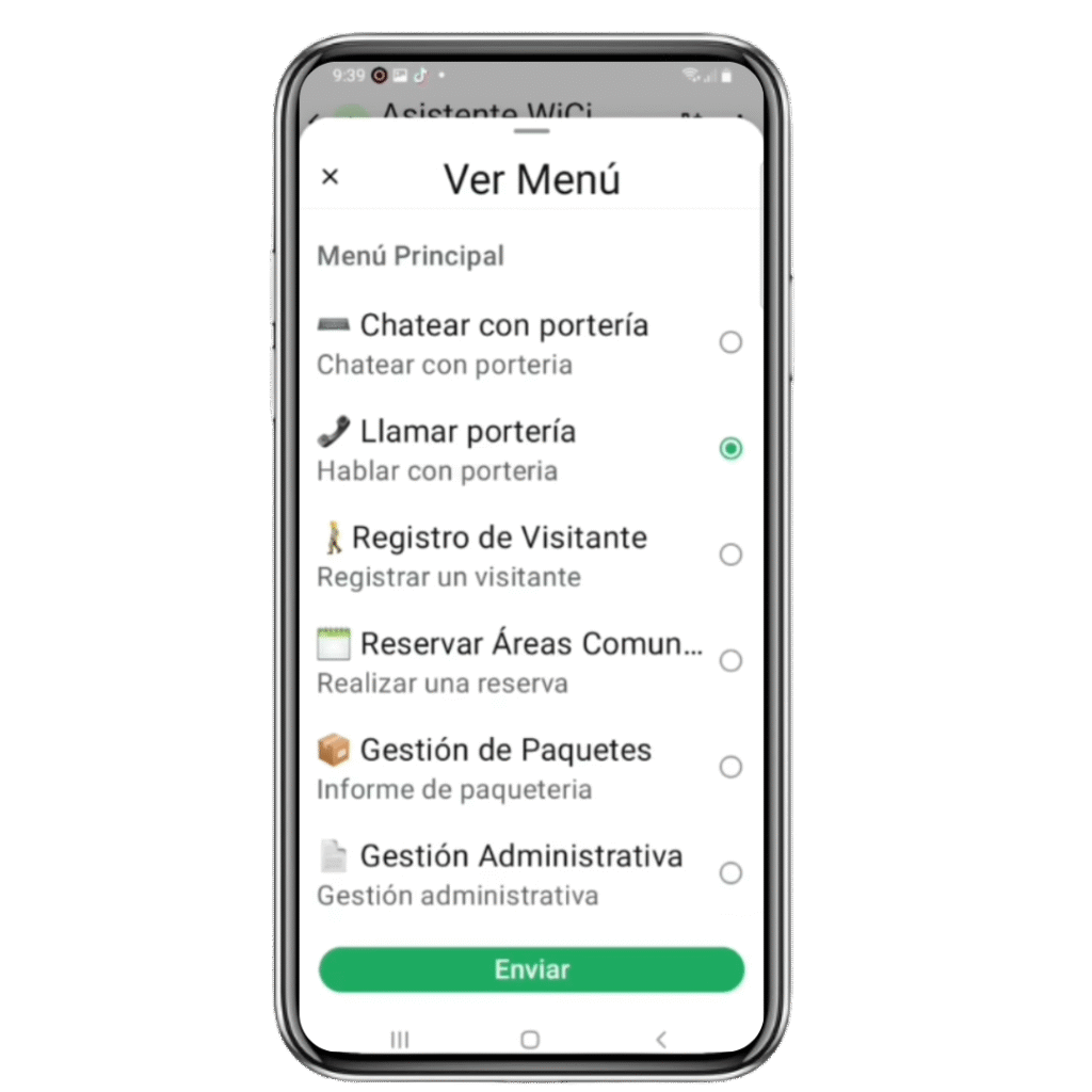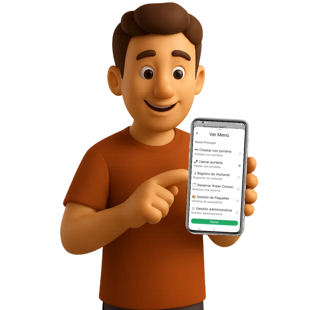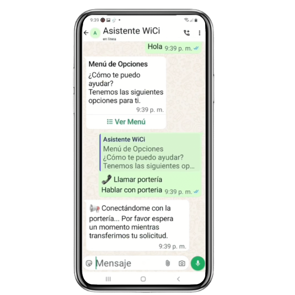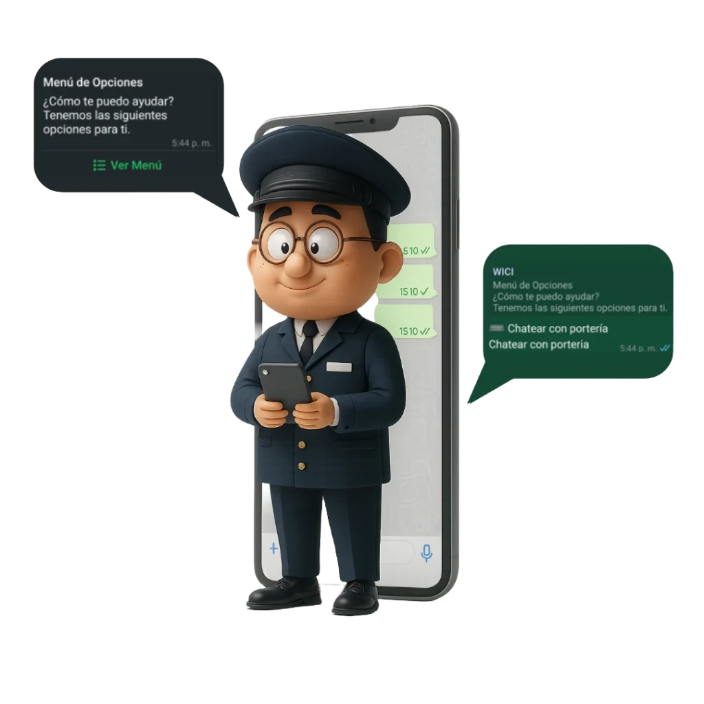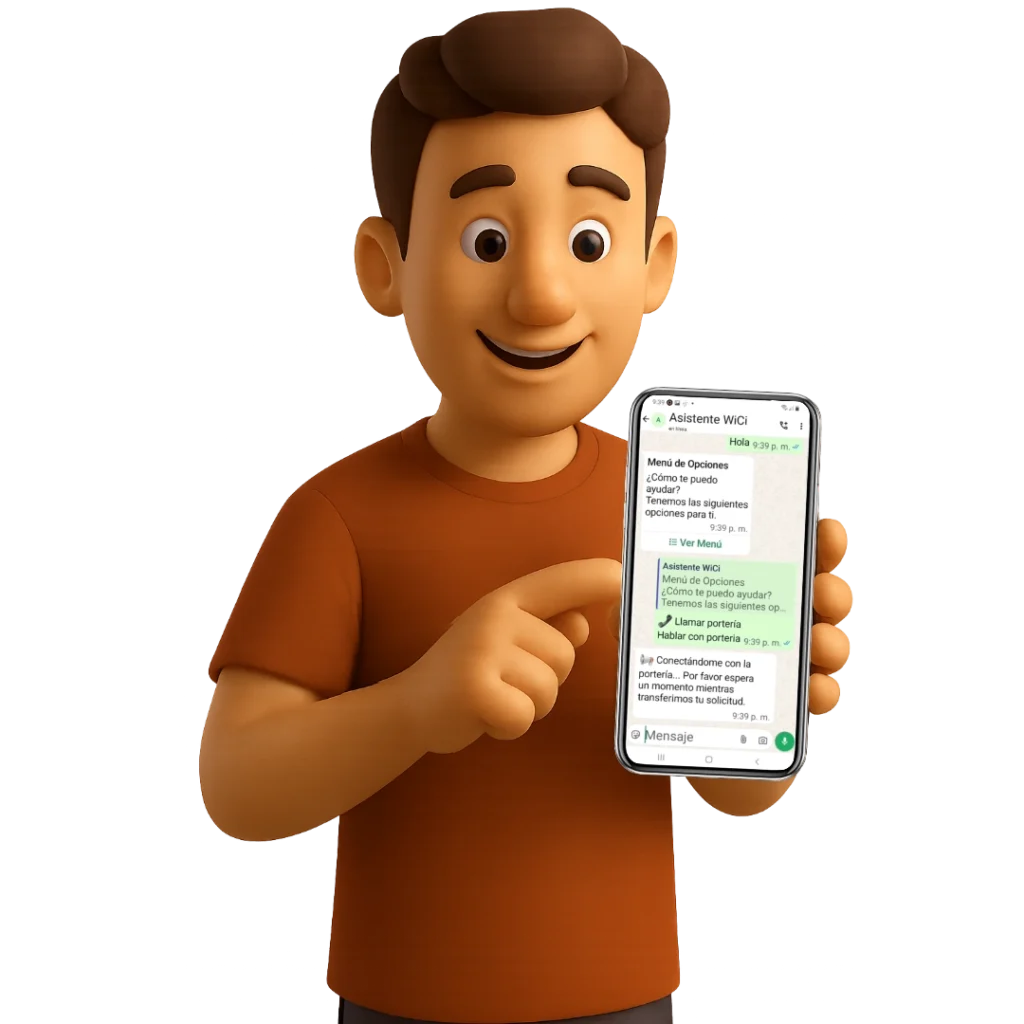 Permite a los residentes comunicarse con la portería desde WhatsApp, sin intercomunicadores físicos ni llamadas perdidas.